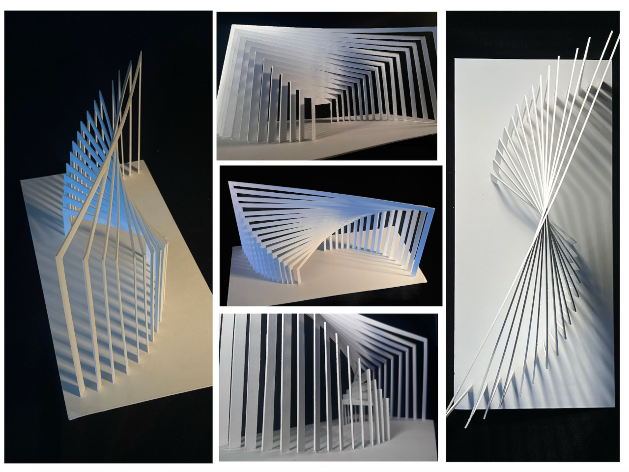 這是我高中最後一年的畢業作品。由硬板紙剪出相同形狀、不同大小的圖形,透過交錯排列和光影變化呈現出獨特的效果。從每一個角度看都是不一樣的感覺。